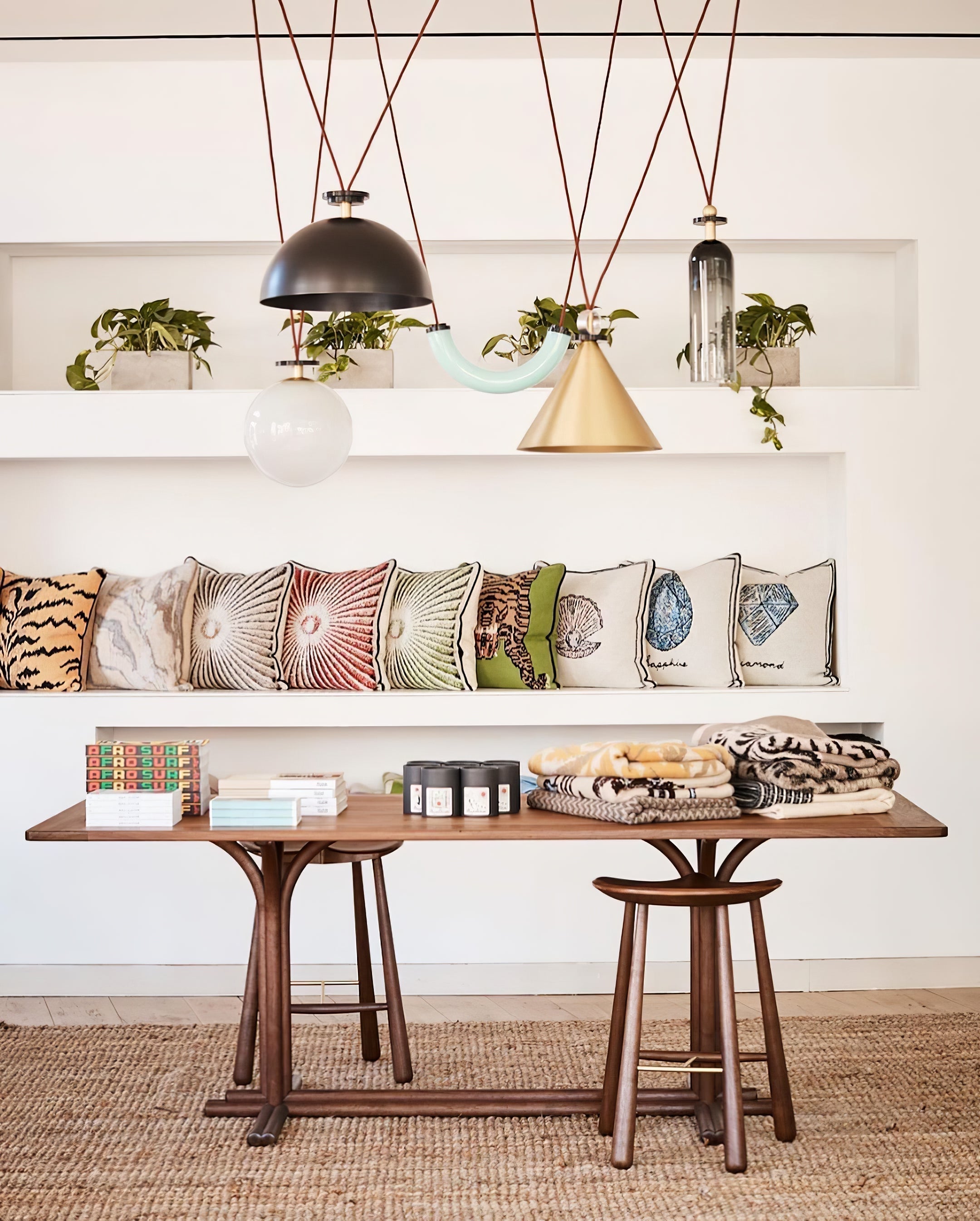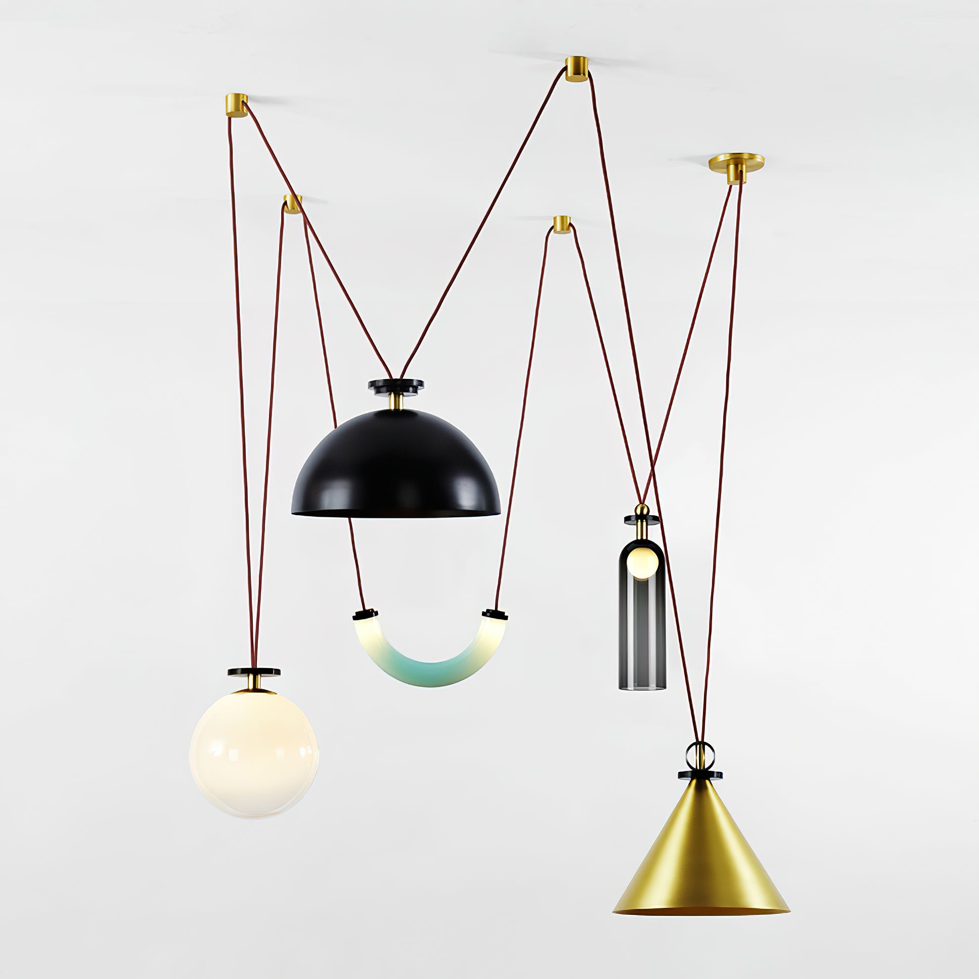 Shape Up is a versatile lighting series that celebrates bold geometric shapes: the playful juxtapositions upend traditional notions of symmetry in favor of dynamic spatial harmony. The modular system allows the shapes to be suspended and composed in response to a space’s architecture and function, its shades discreetly networked via connecting cords and hubs.