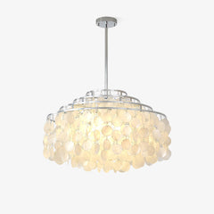 Indulge in the mesmerizing play of light and shadow with our Shell Waterfall Chandelier. The high-gloss chrome-plated frame, adorned with cascading shell disc chains, creates a unique and captivating effect on your ceiling. Its translucent surface acts as a light filter, elevating any space with a stunning visual display.