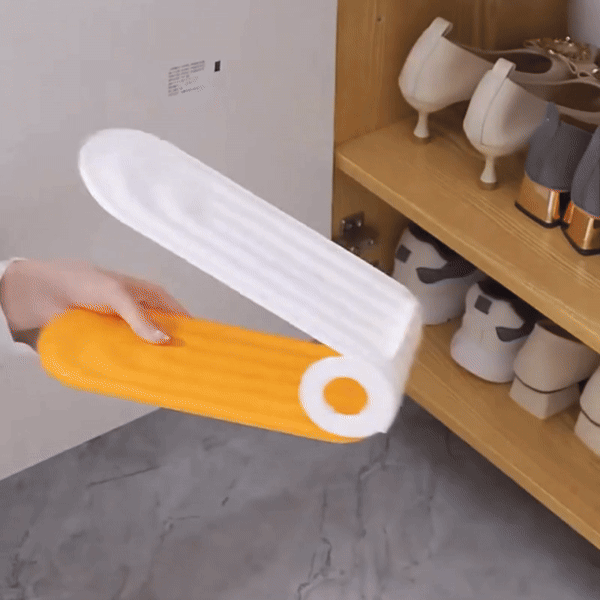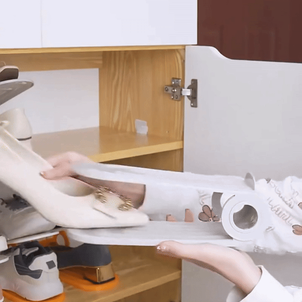 Using the shoe organizer is incredibly simple. Thanks to its adjustable design, you can customize the height to fit the size of your shoes. The sturdy material ensures durability and can easily support heavier shoes. This keeps your shoe closet tidy and organized at all times.