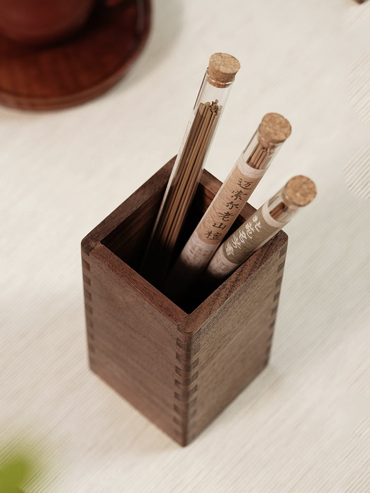 Tidy up your workspace with this wooden pen holder! Keep pens, pencils, and other essential office supplies organized and within reach. Say goodbye to clutter and hello to productivity with this simple desk organizer.