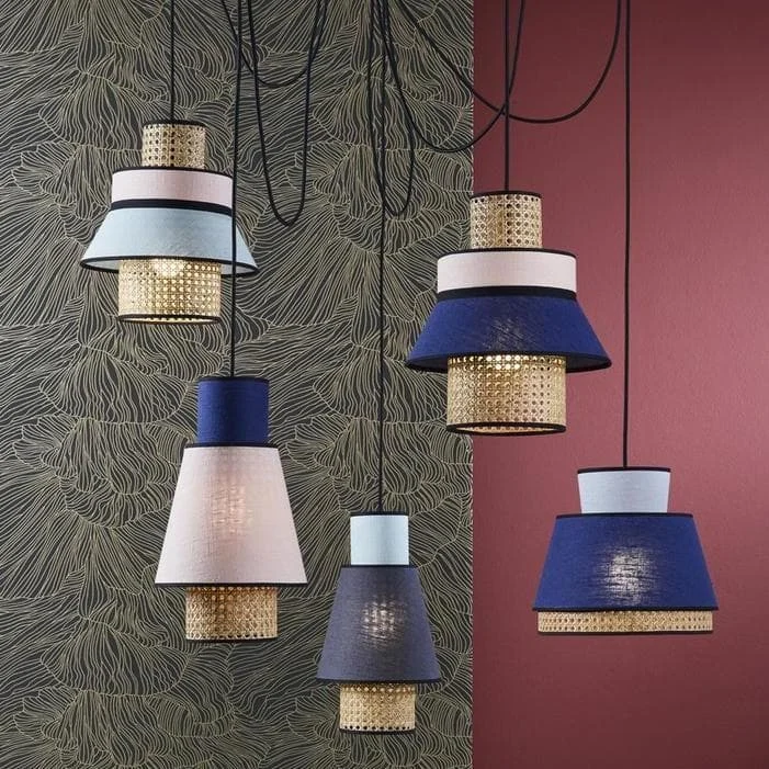 The Singapore suspension is a pretty stack of three lampshades in washed linen and cane. This very old weaving technique gives a captivating contrast to your interior.