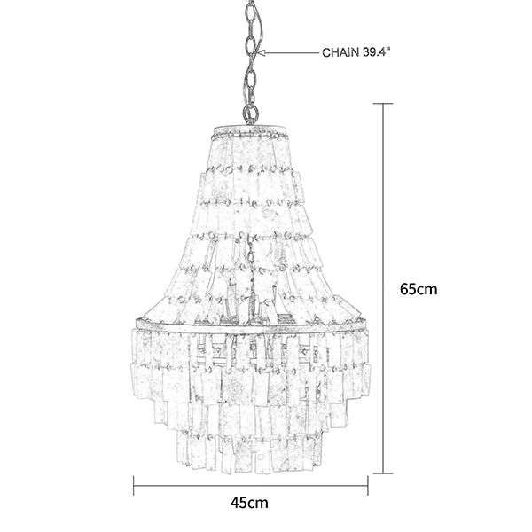 Illuminate your home with the stunning glow of the Skye Shell Chandelier. Each shell is translucent in nature, allowing the light to radiate through for an intriguing effect. The combination of classic chandelier form and capiz shell can’t help but draw you in. Made from Iron and Shell.