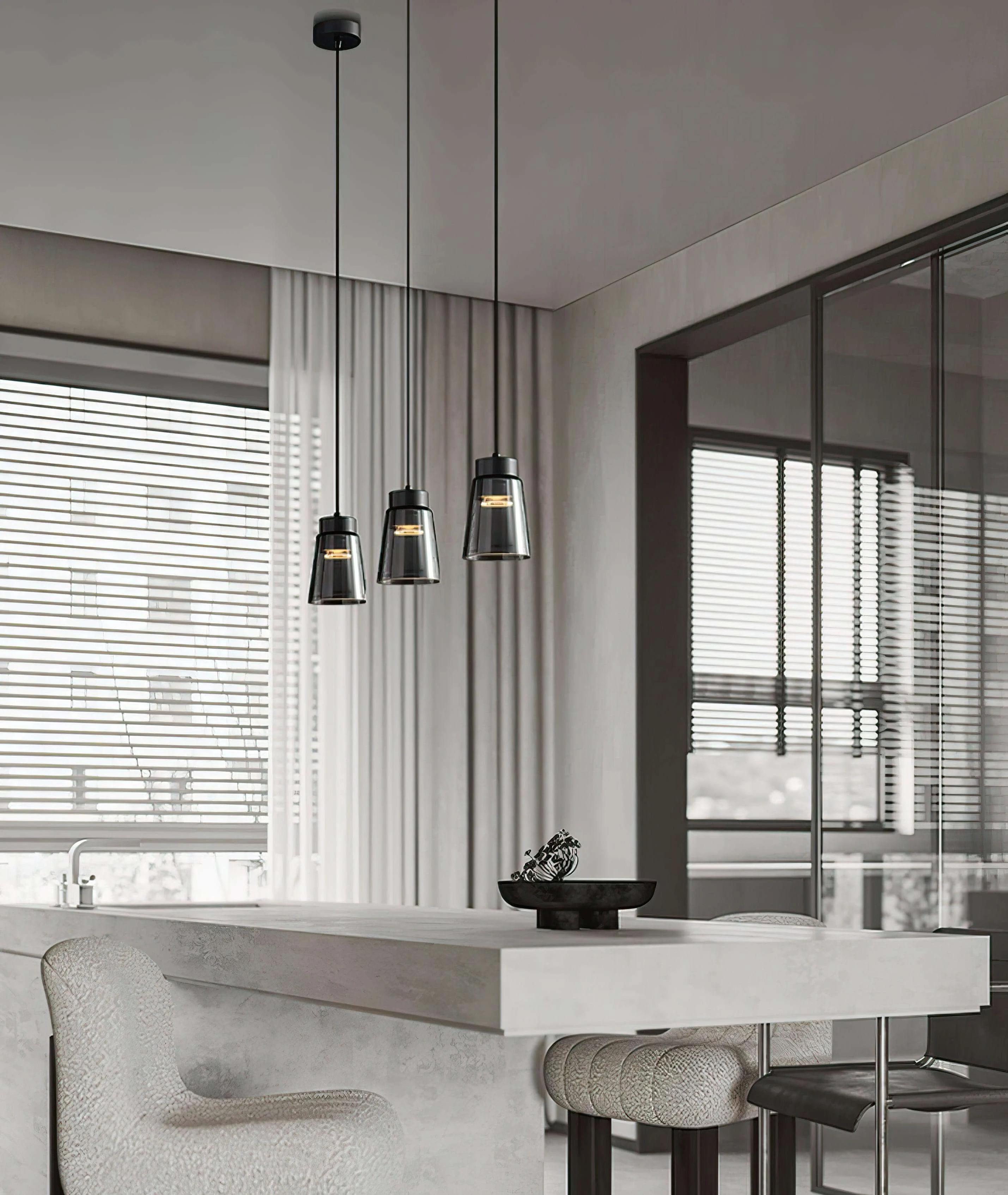 Smoke Cone Pendant Lamp fit nicely as decorative lighting in the room, as beautiful light source light source above the table or as pleasant work lighting over a kitchen island or bureau table. Impeccable shapes perfectly matched colors, this is what characterizes this chandelier.