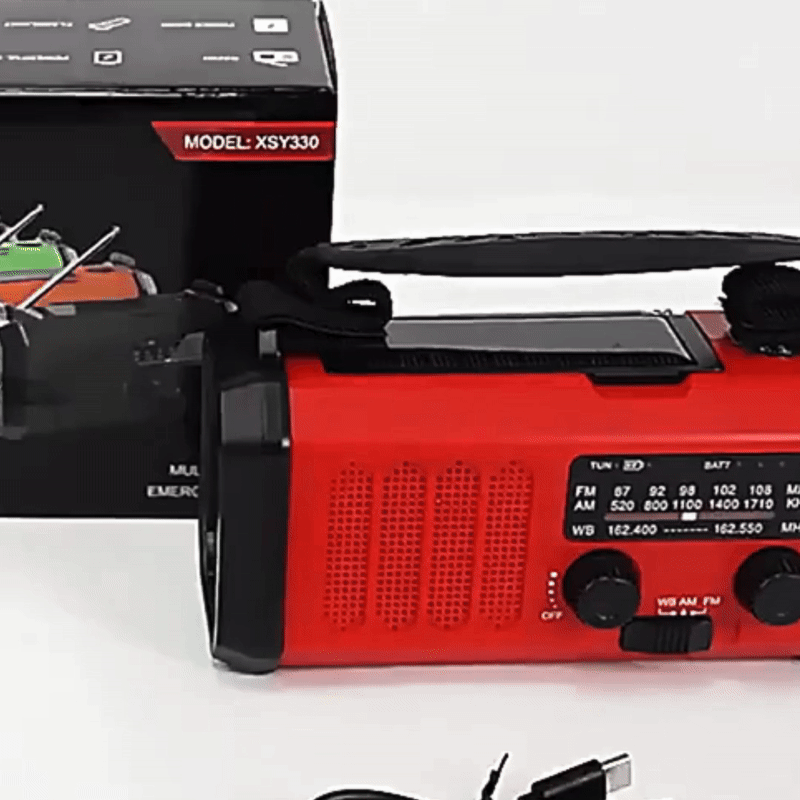 • 📻 Crank radio for emergencies – Works without batteries so you can receive information at any time