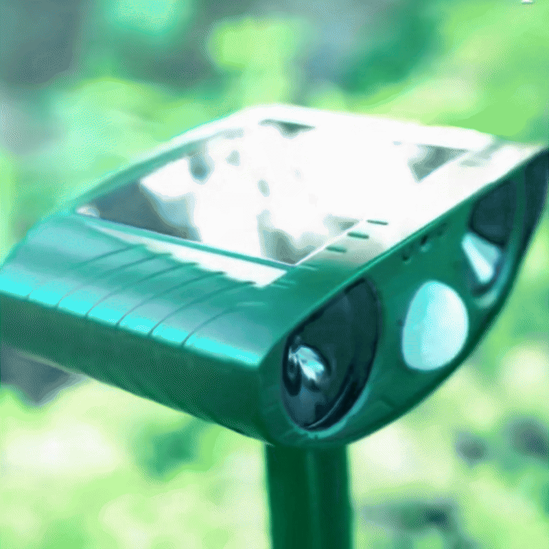 - 🐾 Intelligent ultrasonic technology – Detects movement and emits targeted ultrasonic signals to gently drive animals away.