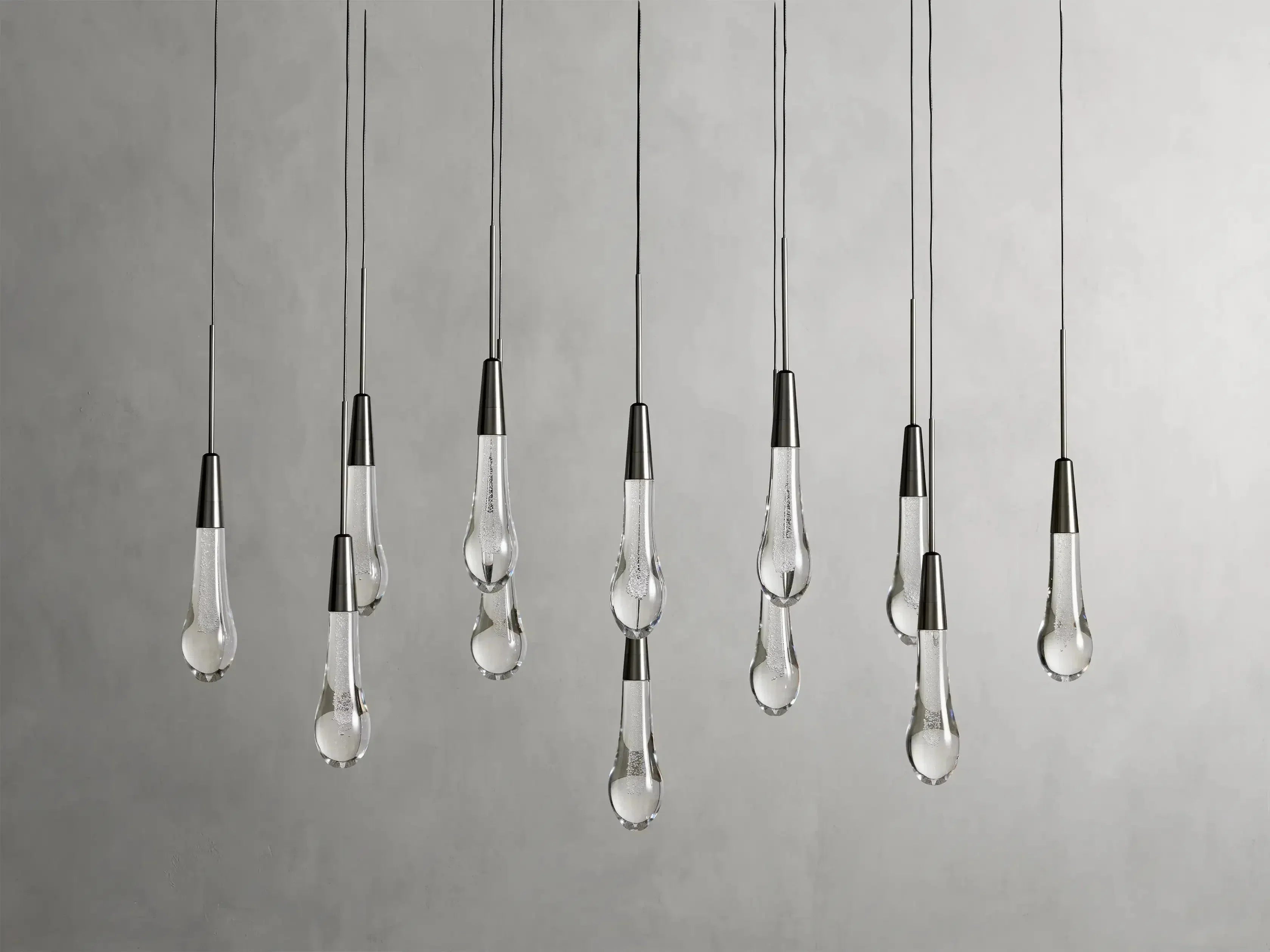 • Featuring adjustable black PVC cords cascading into integrated LED lights handcrafted from seeded glass, our Soltaire Lighting Collection mimics the look of a fallen raindrop.