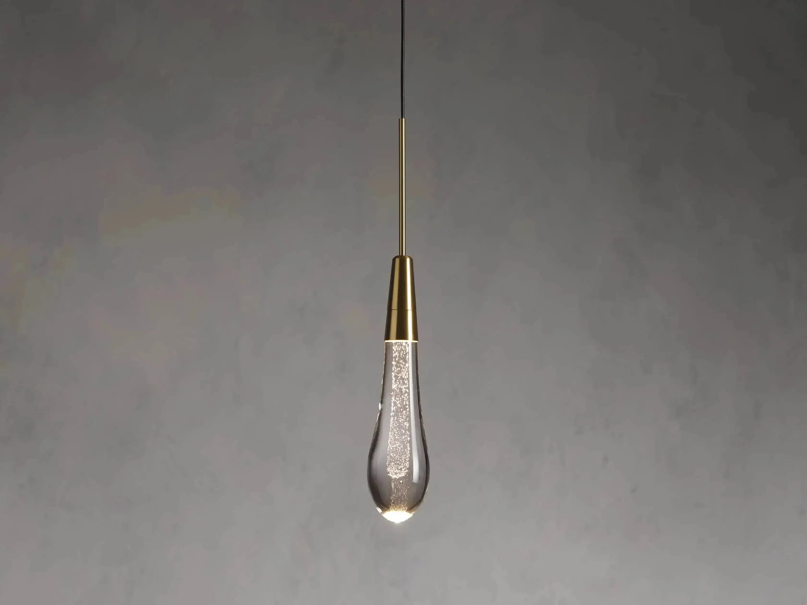 Featuring adjustable black PVC cords cascading into integrated LED lights handcrafted from seeded glass, our Soltaire Lighting Collection mimics the look of a fallen raindrop.