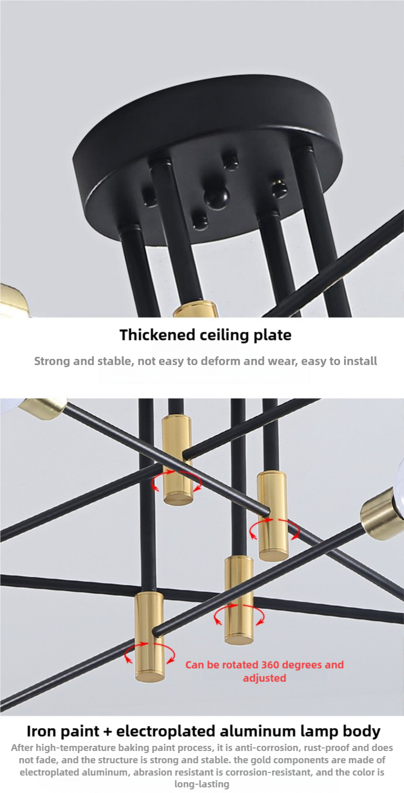 The size is manually measured, there will be an error of 1-3cm. Because of the difference in light, there may be slight chromatic aberration. We appreciate your understanding in advance. We recommend that you’d better let a professional electrician to install it