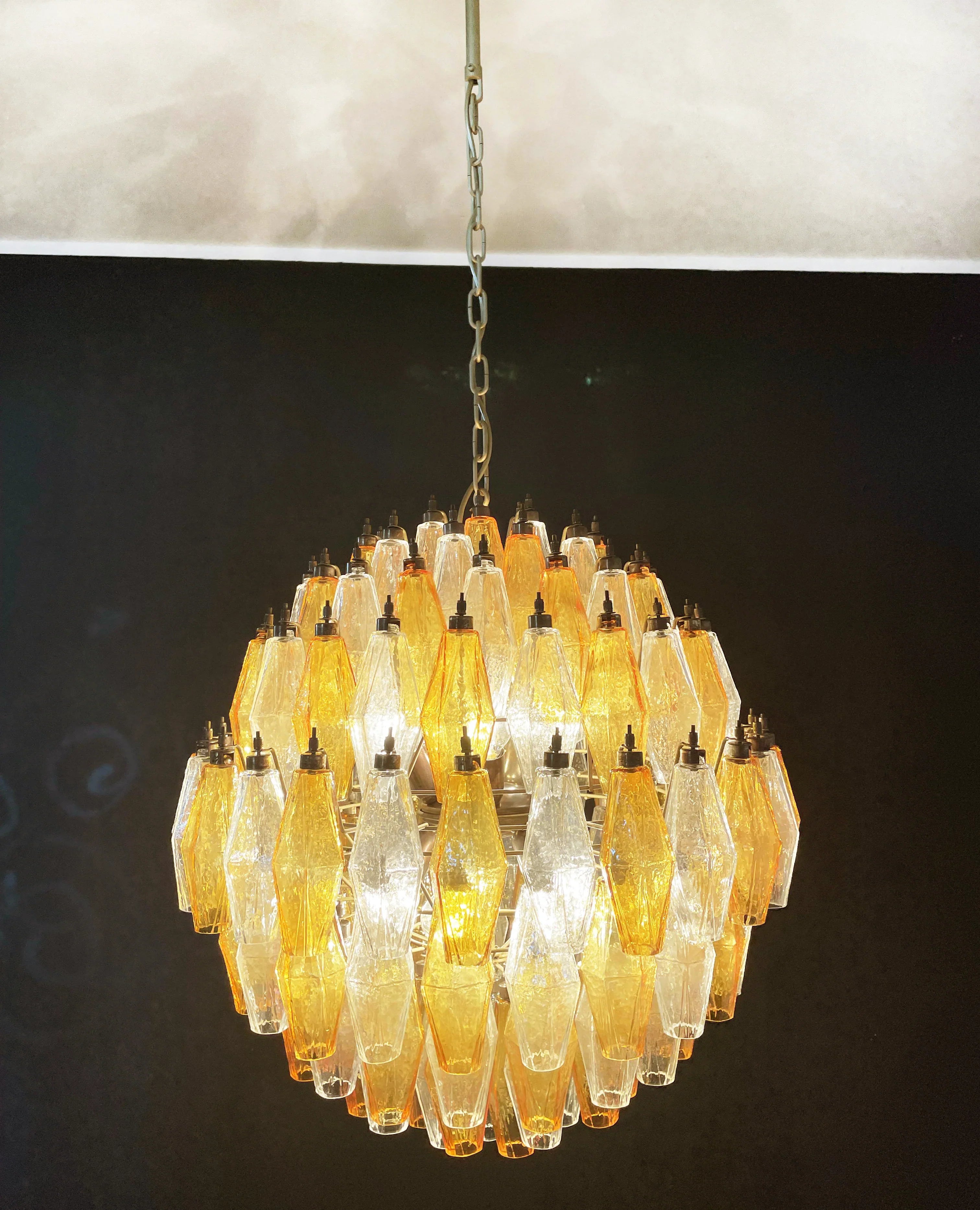 Spherical Murano Poliedri Amber Transparent Glass Chandelier, Transform your living space with the a stunning blend of artistic craftsmanship and luxurious design. Featuring Amber Transparent glass elements, Creates a warm and inviting ambiance, perfect for enhancing any room’s decor, Add a touch of luxury to your home.