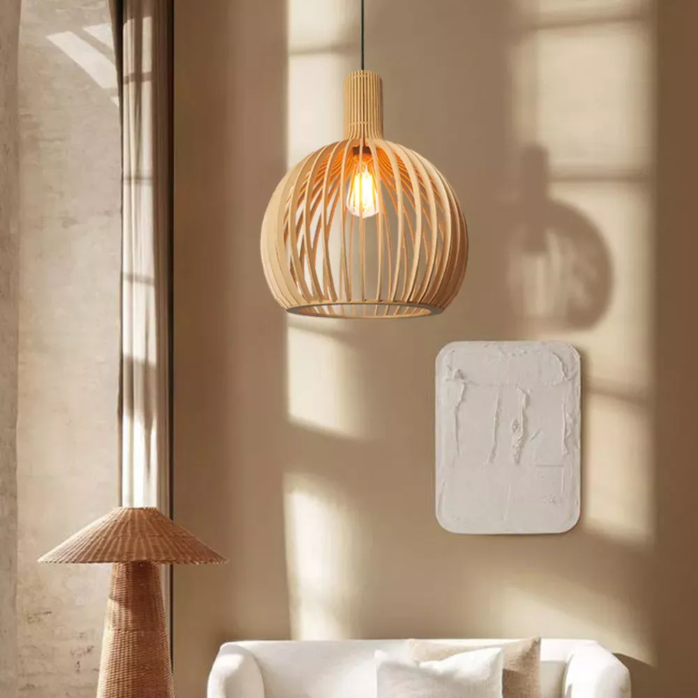 A classic, this pendant is large and airy. A chic and contemporary handmade ceiling light for decoration. Pleasant light and a gentle luminance are provided by the wood. The lamp’s design complements both traditional and contemporary designs, and it can be hung over living rooms or dining tables.