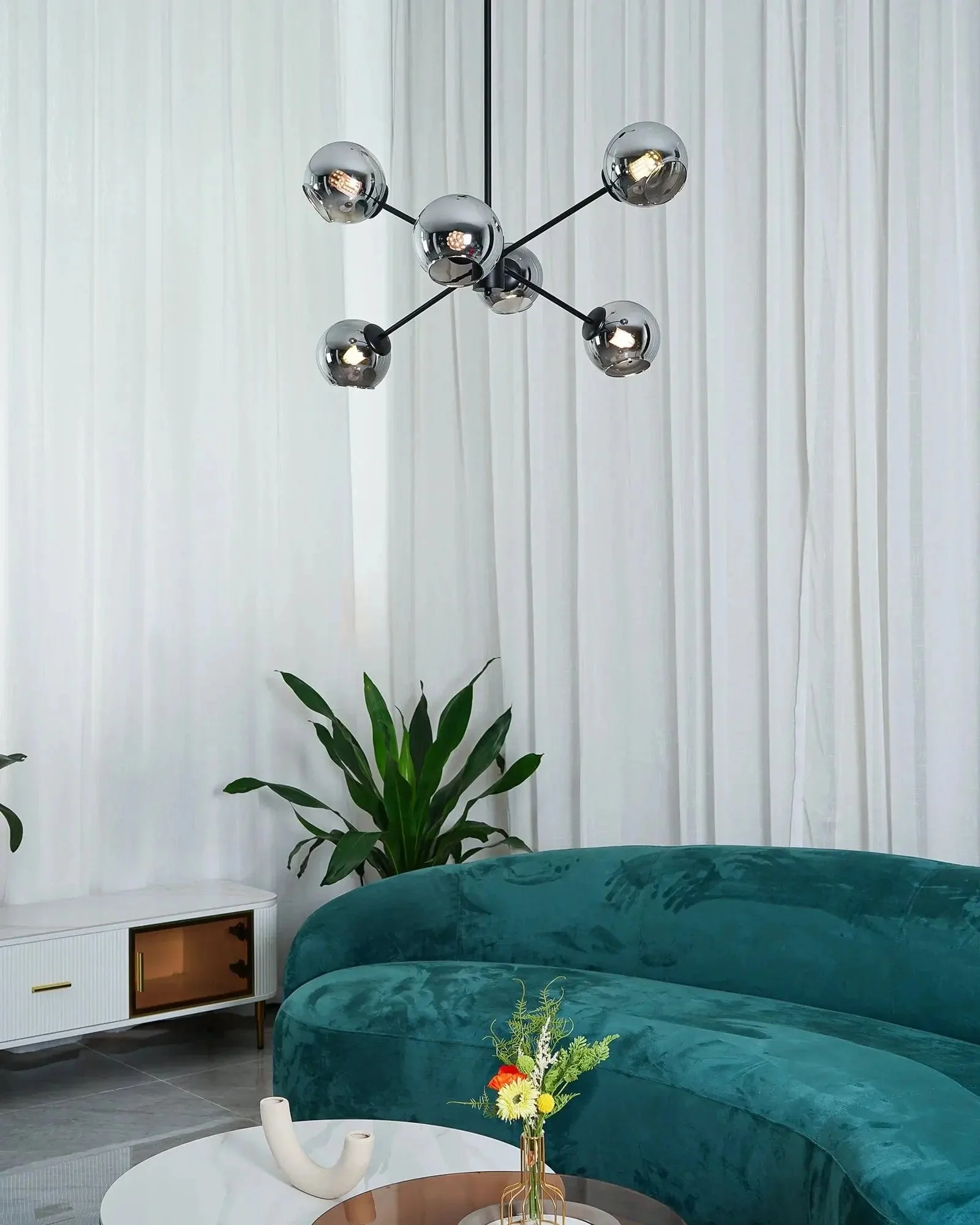 The glass globes cast a romantic glow. A staggered shape adds intrigue. Its adjustable height provides a custom fit. Contract Grade, so you know it’s built to last.