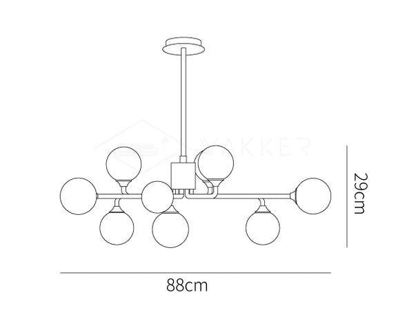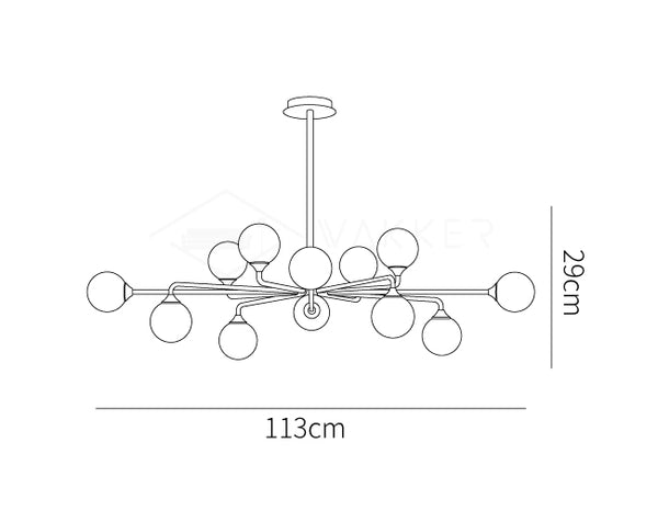 Staggered Glass Globes Chandelier features casually stretched arms including straight and curved arms, giving a sense of freedom, as if it could be unconstrained to extend. With a noble golden body, each detail reveals luxury. Mainly made of metal and glass, it is composed of straight lines, curves, and balls. The opal glass balls are arranged in different levels, which creates a sense of layers. It is available in two sizes. This luxurious molecular light exudes elegance all the time. Whether it’s hung in the living room or bedroom, it can be a good lighting as well as a decorative chandelier, which will add a luster to your home.