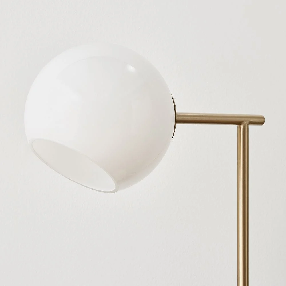 Spark conversation in any room with our Staggered Glass Table Lamp, dressed up with a gleaming glass orb and a sleek brass-finished base.