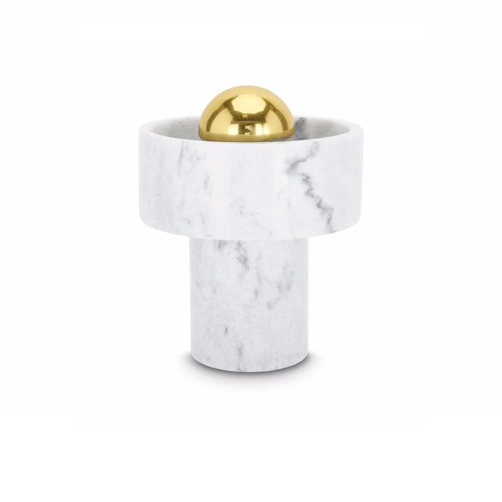 Stone table lamp is carved from white Morwad marble. This hard, semi-precious surface has transfixed architects, sculptors and designers for millennia. It is the dream material – tough yet tactile, heavy and long-lasting with individual personality.