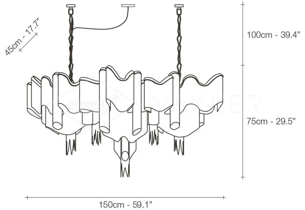 Size: L 150cm x W 45cm x H 75cm / L 59″ x W 17.7″ x H 29.5″ (E14 Bulbs x 29)
