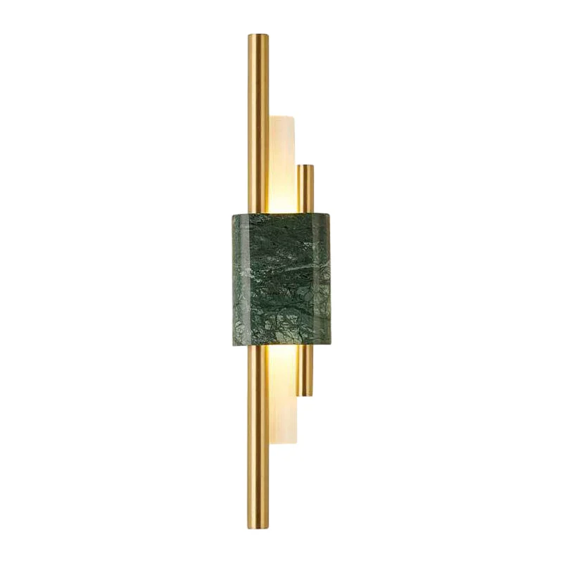 - This wall lamp is made of electroplated metal and an acrylic lampshade. It is matched with a marble base with natural texture. It is sturdy, creative and easy to match.