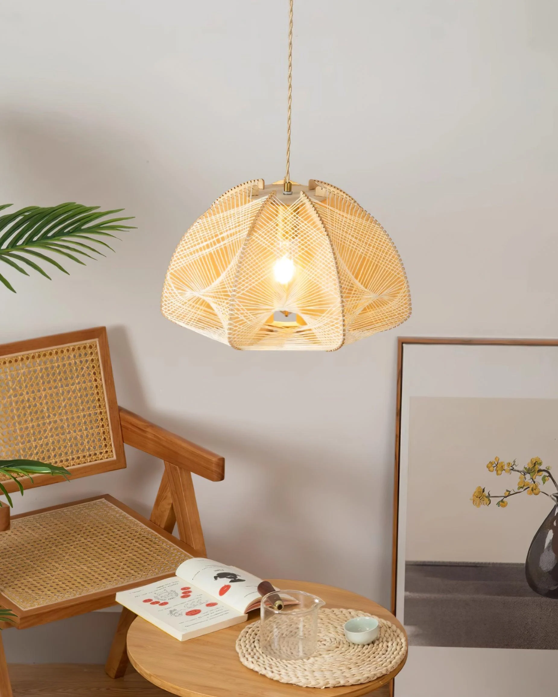 Discover the Surya Pendant Lamp a celebration of intricate craftsmanship and natural aesthetics. This lamp is a testament to the beauty of hand-woven artistry, with each delicate strand of material interlaced to form a captivating, dome-shaped design. It casts a dance of light and shadow that playfully animates any room, offering a warm, ambient glow that is both comforting and visually stunning.