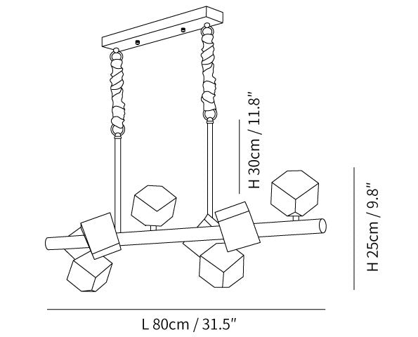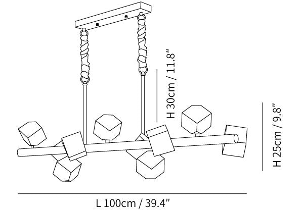 19.7″ hanging height hanging chain. Can be extended upon request.
