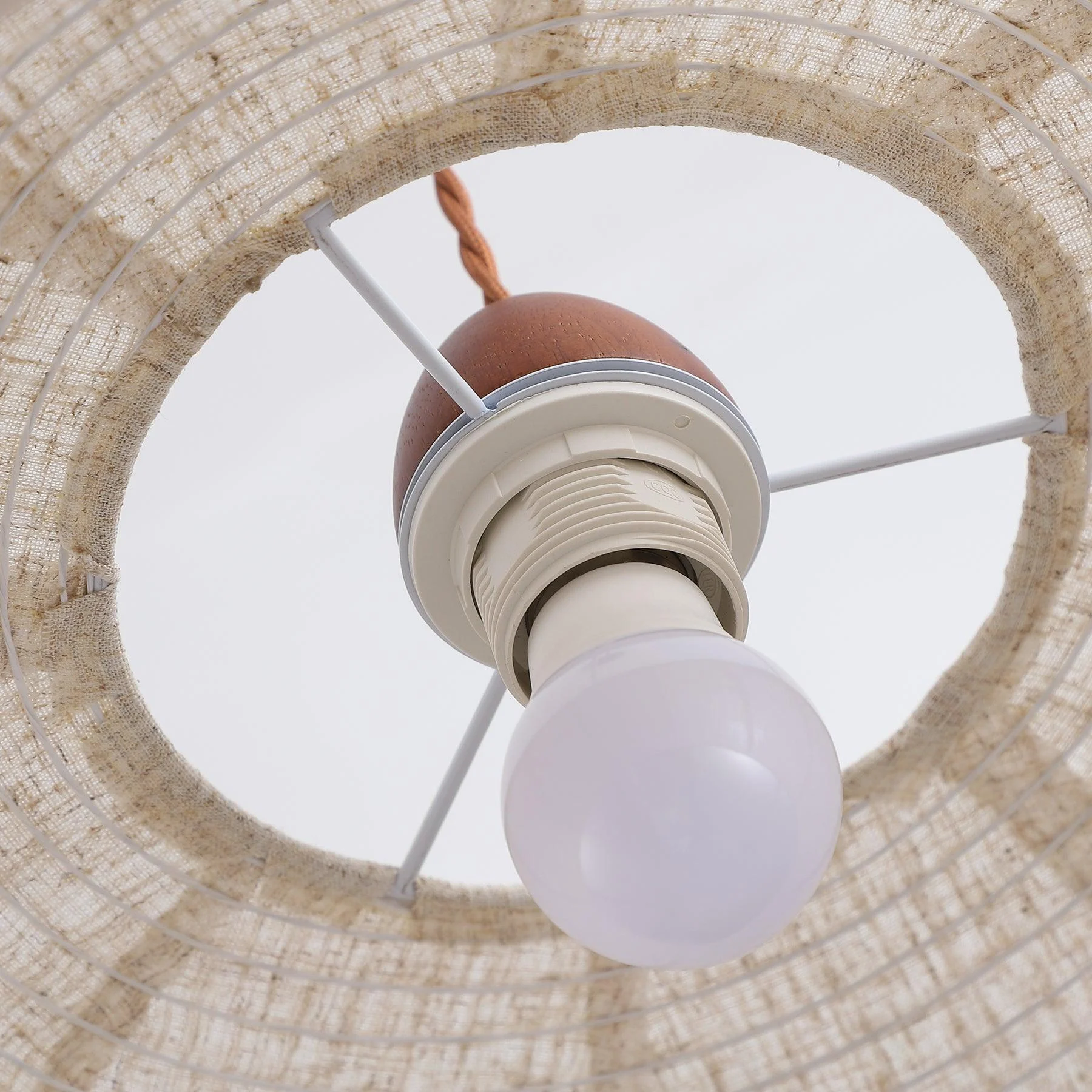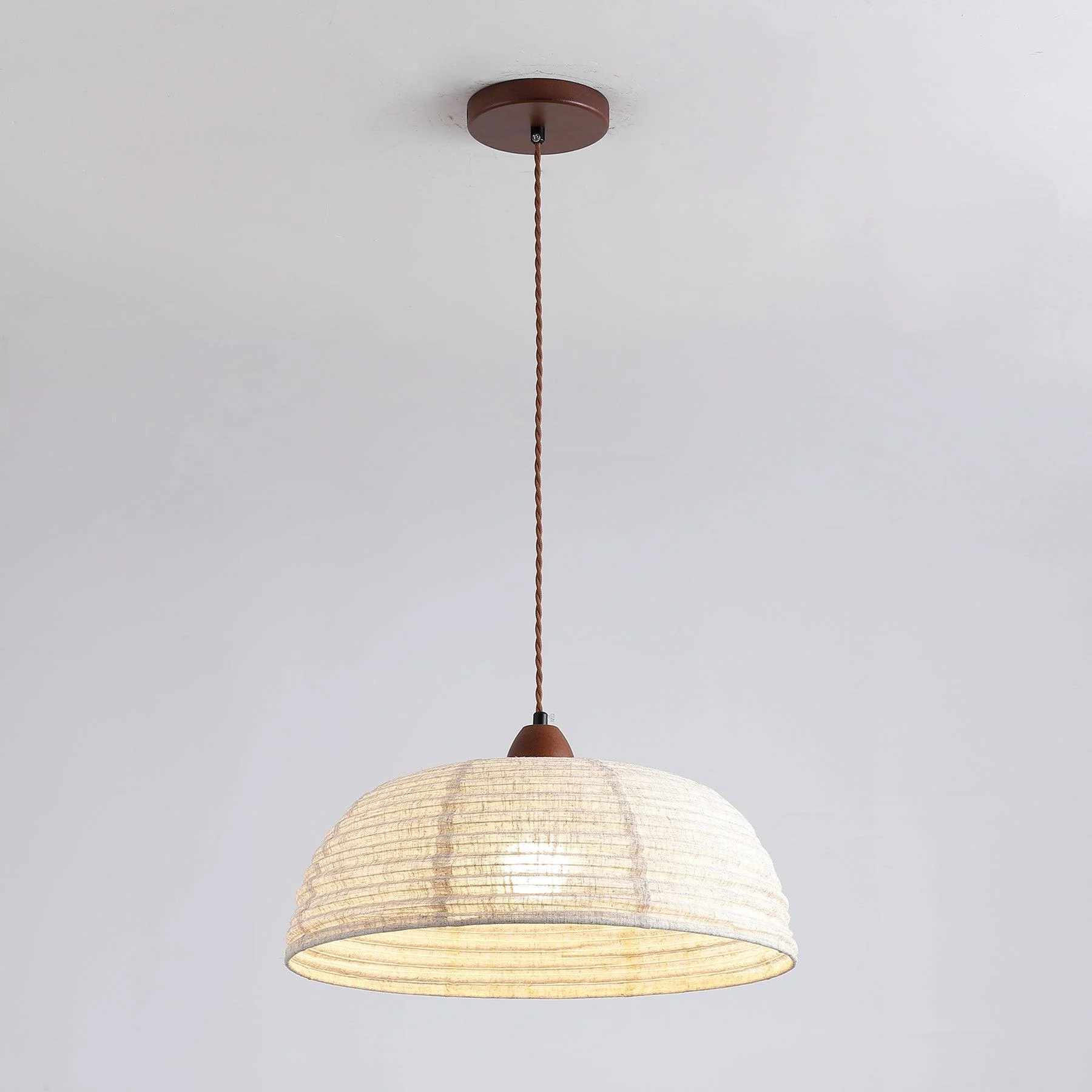 The Tanto Pendant Lamp exudes the serene elegance of Japanese design. Enveloped in a textured fabric shade, it softly diffuses light, lending a calm, contemplative atmosphere to dining areas. White wax wood accents add a touch of natural sophistication, harmonizing with the simplicity of its form. This lamp is a beacon of tranquility, perfect for creating a serene dining experience that highlights the beauty of minimalism.