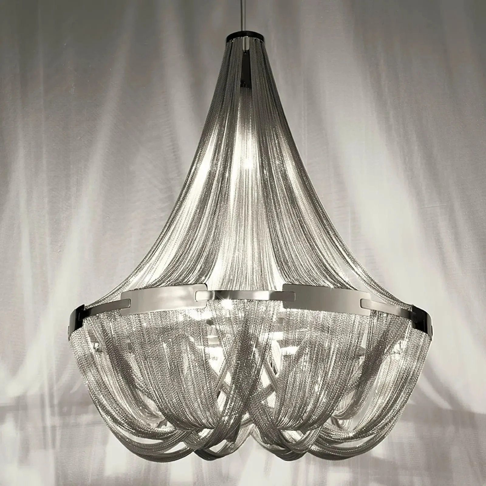 Tassel Aluminum Chain continues to reinvent the classics. With Aluminum Chain, combines traditional, artisan techniques with cutting-edge technology to give the traditional chandelier a modern update. Created by interlacing a metal chain over a nickel-plated frame, Aluminum Chain creates a dramatic and romantic effect, while still being able to complement today’s modern luxury.