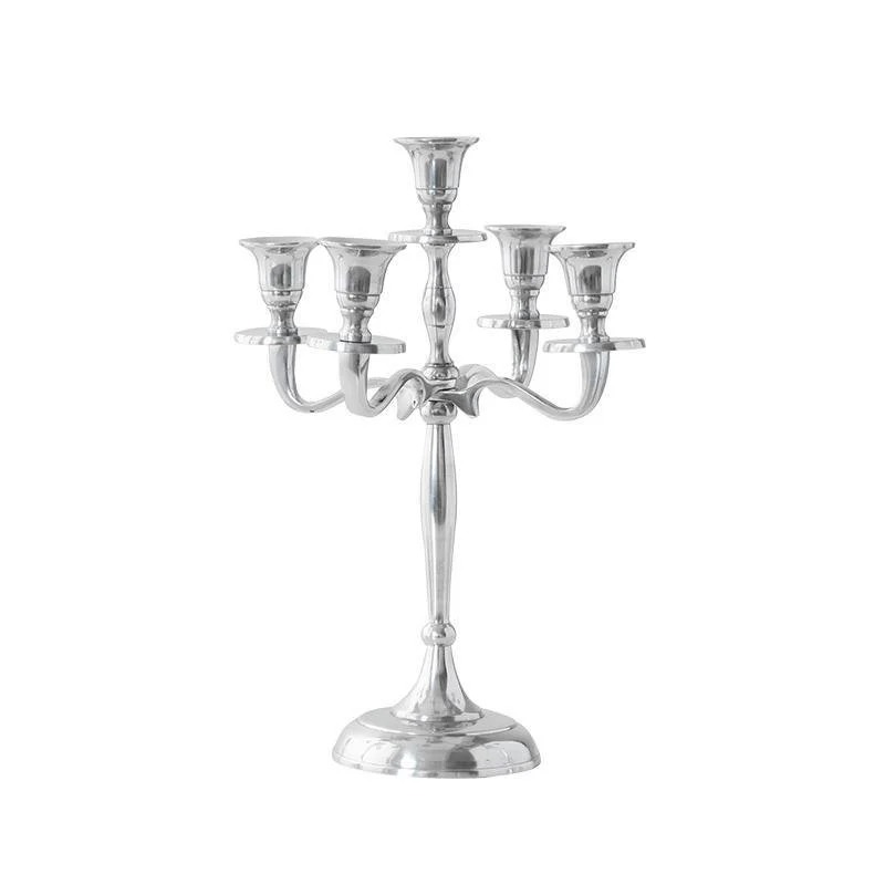 - A beautiful piece suitable for 5 candles, this candle holder is unapologetically traditional in styling, with a classic charm that you’ll grow to appreciate as you live with it. Created from metal and finished in gold, the strong brass base ascends to subtle curves that blossom into five stems enabling space for 5 candles.