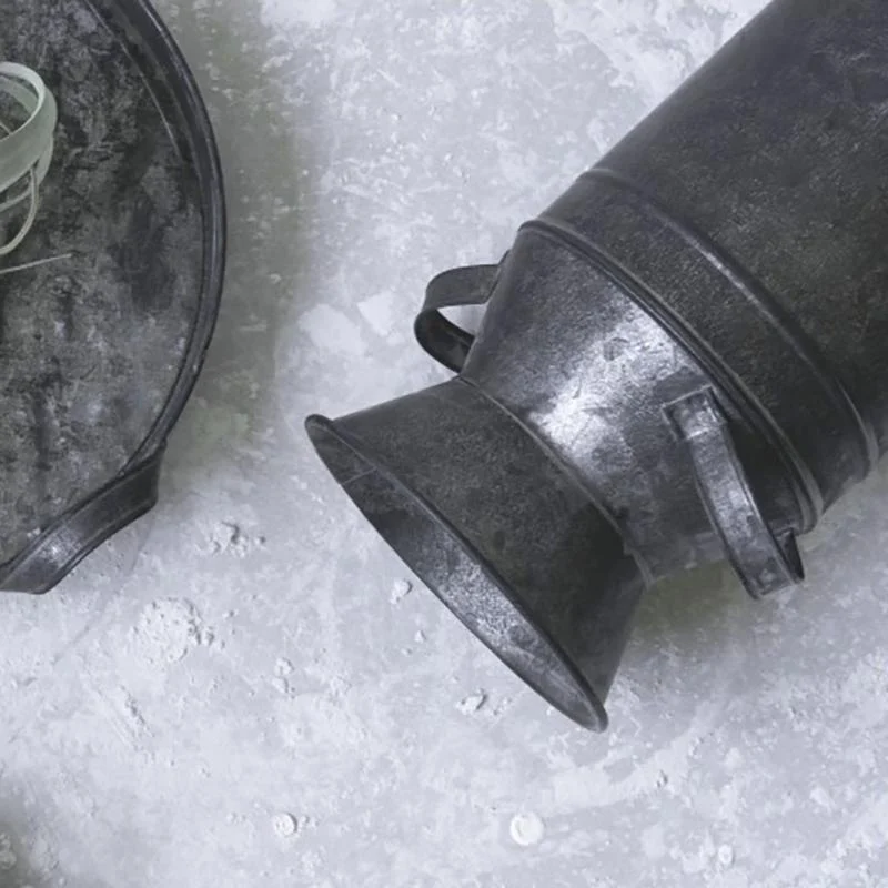 Created in distressed gray aluminum, this rustic iron jug excels as an eclectic standalone piece or with similarly styled kitchen utensils and will create an old-school ambiance amongst your kitchen utensils. The top of the jug is round, whereas the base of the jug has pinched sides atop its square base, enabling an unapologetically retro vibe. The handles at the top of two opposing sides of the jug mimic the style of a traditional milk churn. Additionally, this charming rustic jug can be displayed as an ornament on a living room table, above a fireplace, or as the centerpiece of a table.