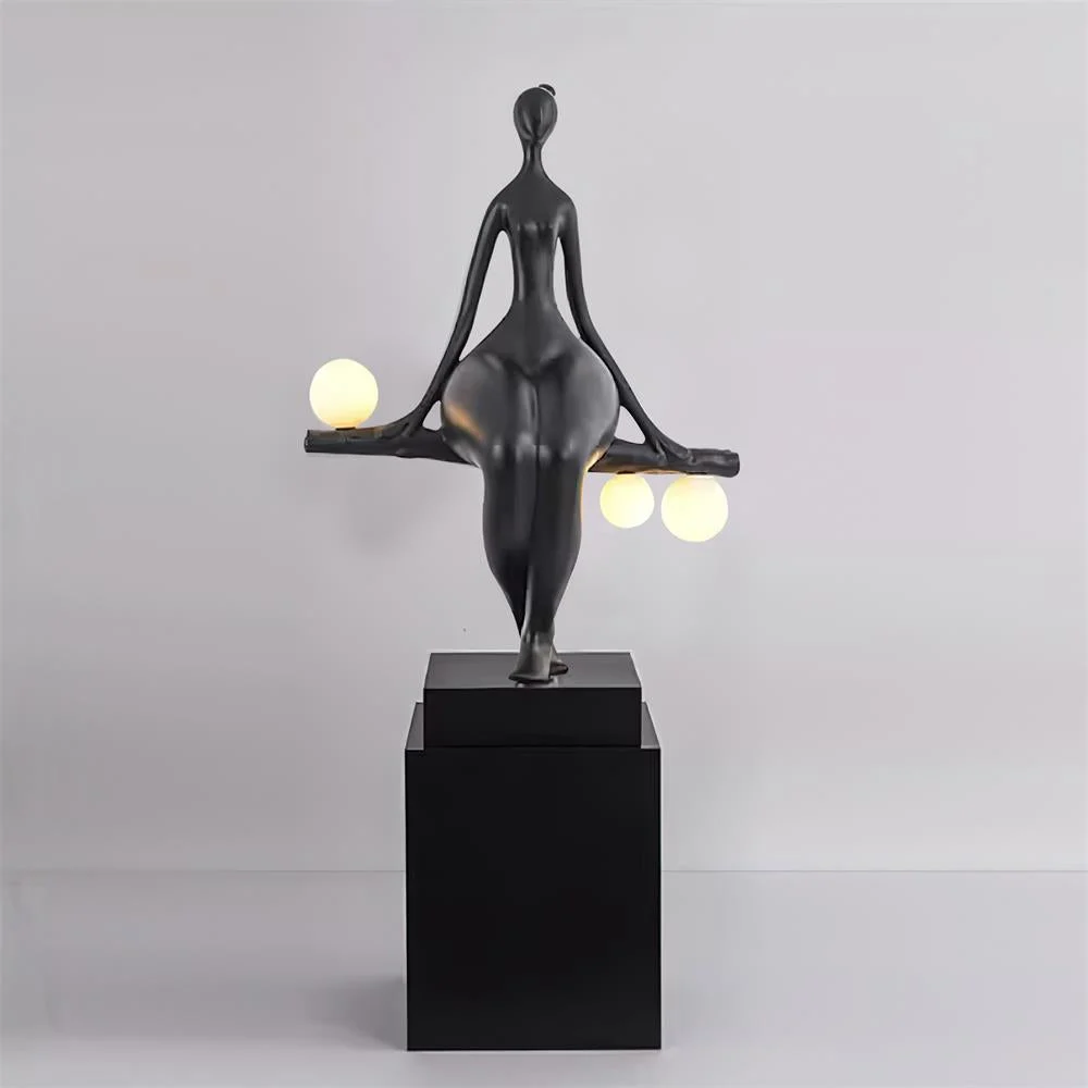 This lamp seamlessly blends art and functionality through its elegant, abstract sculptural design. Inspired by the concepts of balance and harmony, it features a human form that embodies simplicity and strength. The graceful figure, like a master of balance, extends its arms to gently hold glowing orbs, casting a soft, warm light into your space.