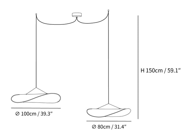 59″ Adjustable hanging height cable, which can be lengthened as required.