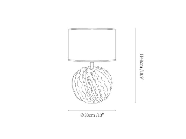 A celebration of contrast and movement, the Terralune Lamp fuses earthy terracotta with crisp white in an undulating, spherical ceramic base. Its rhythmic, hand-textured ridges evoke the organic swirl of wind-carved landscapes—grounded yet ethereal beneath a soft linen shade.
