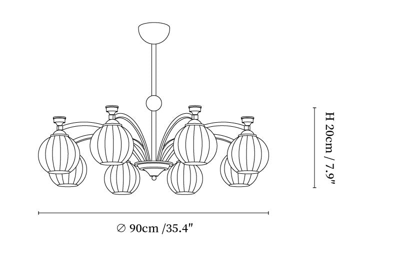 8-Lights Size: Dia 90cm x H 20cm / ∅ 35.4″ x H 7.9″