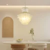 - Inspired by French retro style, this modern chandelier features a captivating design crafted from premium iron, natural shells, and shimmering crystals. You can choose between the 5-light or 8-light size to suit your space perfectly.