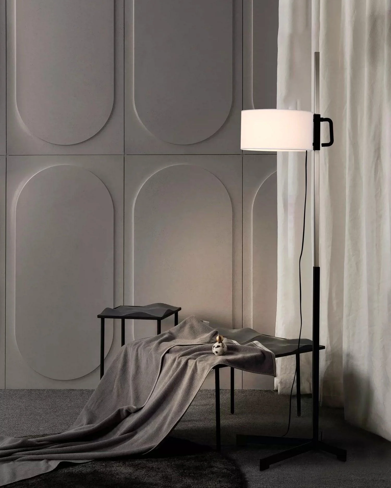 The TMC Floor Lamp exudes sophistication, boasting a two-sectioned metal structure topped with a white Fabric shade. Its design is an exceptional fusion of intelligence and good taste, creating a light source that is not only adjustable but also timelessly chic. Move the shade effortlessly with an embedded magnetic control and bask in the tasteful glow of premium lighting.