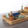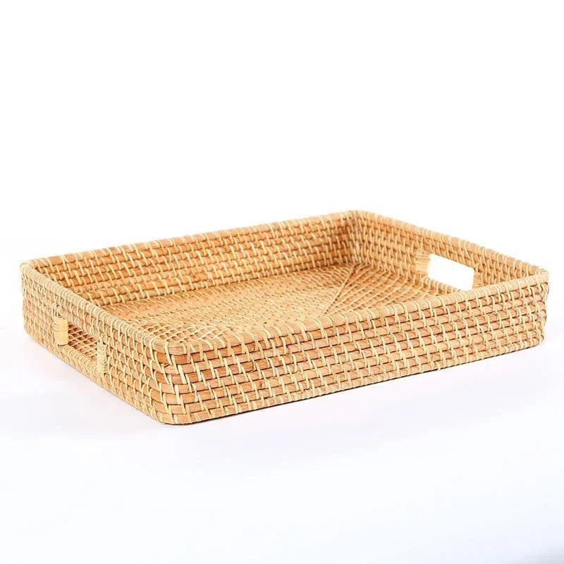 - The rectangular shape is perfect for serving trays and boards, and the handles provide a comfortable grip while you carry it. The woven bamboo also makes it easy to clean with a dry cloth. Perfect for use on top of a bed, sofa, or table as an extra storage item or anywhere else you can think of!