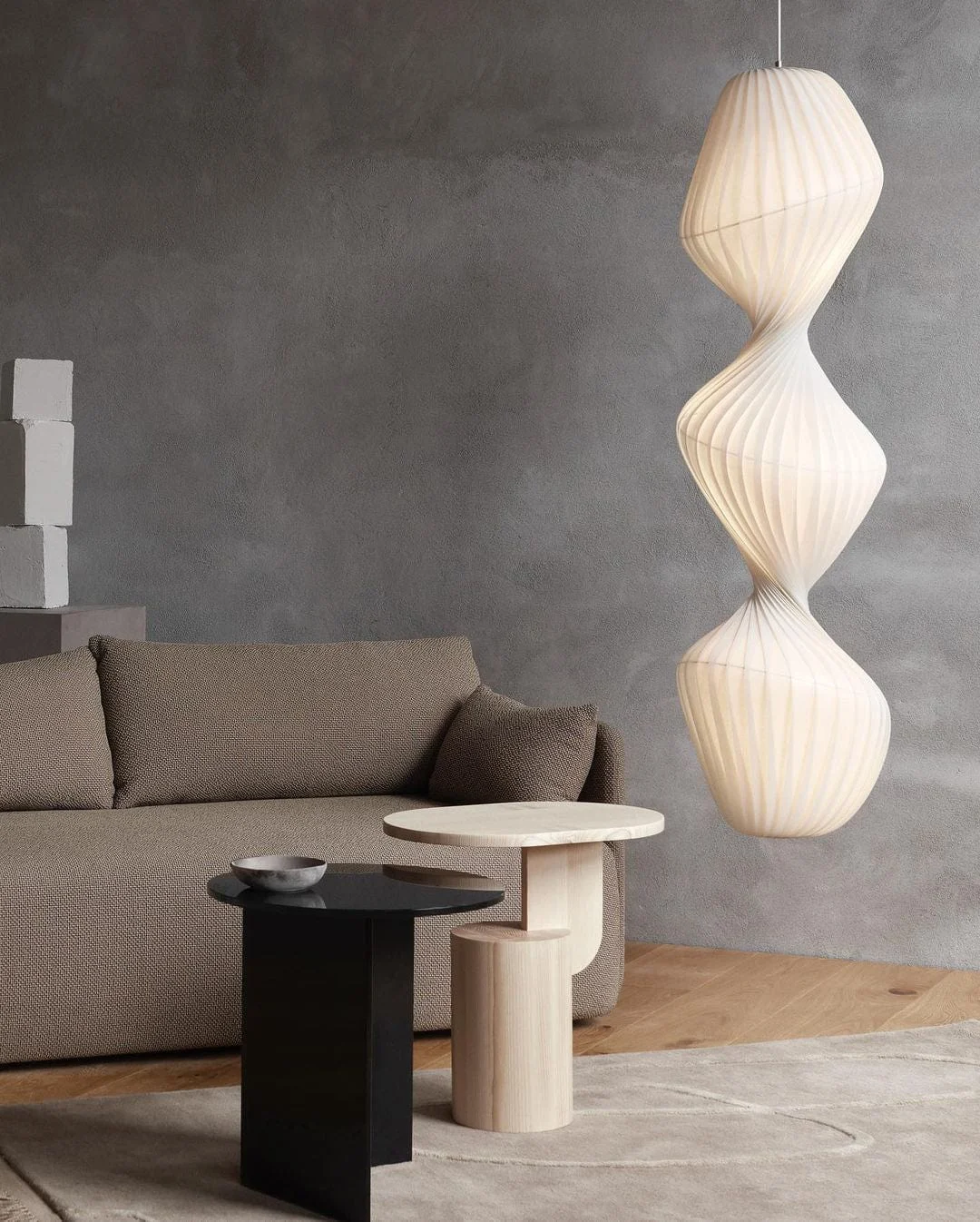 TR32 is an elegant and sculptural lamp. The large body and volume of the lamp provides good and general lighting.The textured white screen material ensures a soft and comfortable diffused light. A unique and intriguing lamp, with a playful and asymmetrical shape which .Playful yet cute.