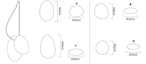 Model C: Dia 20 cm x H 30 cm / ∅ 7.8″ x H 11.8″