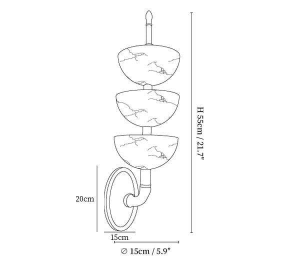 The Triple Alabaster Wall Sconce exudes elegance with its blend of snowflake stone and metal. Featuring three beautifully crafted alabaster shades, this sconce emits a soft, diffused light that creates a serene ambiance. The brass metal frame complements the natural patterns of the alabaster, making it a stylish and sophisticated addition to any room. Inspired by the timeless beauty of alabaster and the warmth of brass, this sconce is perfect for enhancing hallways, living rooms, or bedrooms with a touch of luxury and tranquility.