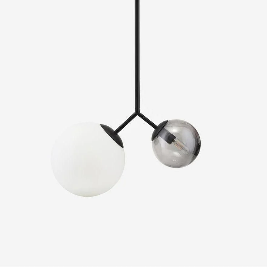 The Twis Pendant Lamp is a study in modern minimalism, merging geometric elegance with a bold aesthetic. Suspended from a slender golden rod, the lamp features two globes of frosted glass, each emanating a soft, ambient light that captures the essence of contemporary design. The asymmetrical arrangement of the spheres creates a dynamic visual interest, making it not only a source of illumination but also a sculptural statement piece.