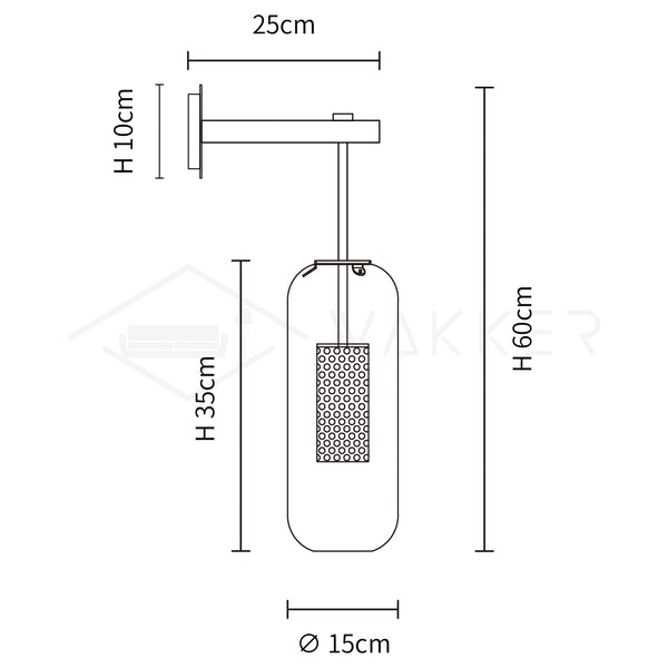 The majestic Vadim wall lamp sports a generous glass body which contrasts with its fine steel rod. Suspended in the air, the perforated cage emits a soft light and projects graphics reflections on the walls.