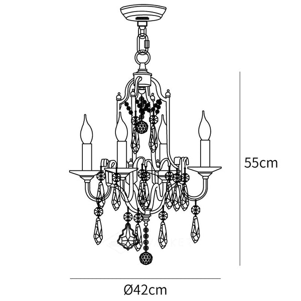 The Valentina lighting collection by Homelova was named after the Latin word meaning “strong and brave,” and rightfully so. The willowy frame is finished in iron while Clear Polished glass crystals adorn each piece, adding even more elegance. Each candelabra style bulb sits in its own clear, crystal bobeche.