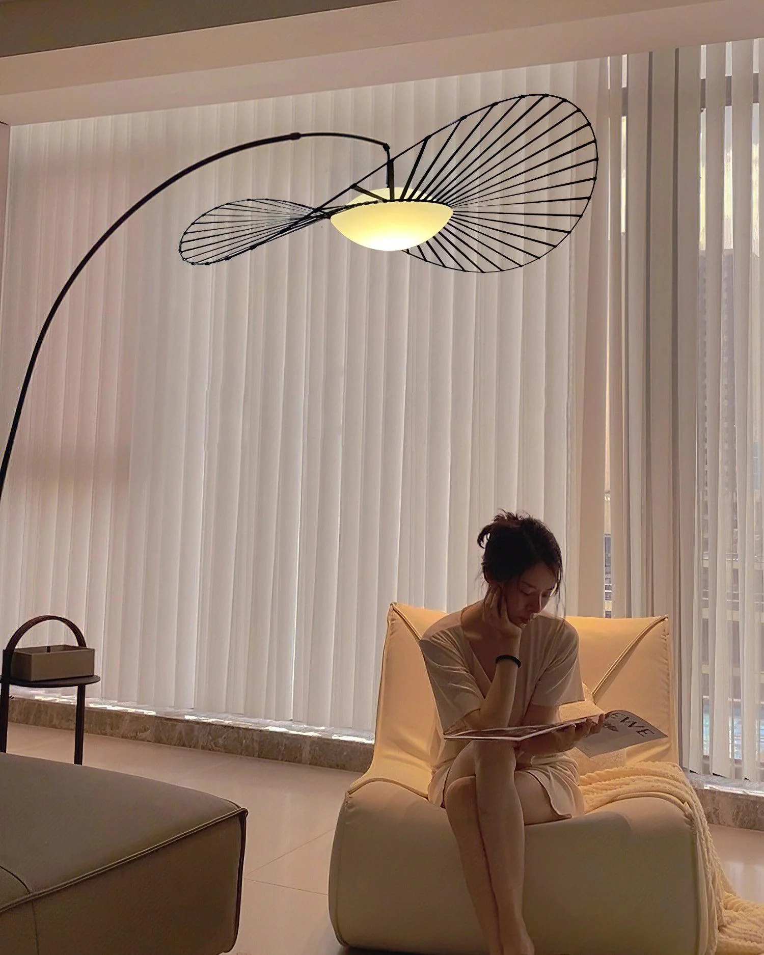 Explore the ultimate fusion of art and illumination with this innovative floor lamp, a design focal point for any space. Its unique blade-shaped lampshade with elegant lines creates a dynamic visual effect, reminiscent of leaves dancing in the air. The arched structure not only ensures stability but also offers flexible lighting angles for adjustment. The sleek black stand blends perfectly with modern aesthetics and provides a striking contrast, accentuating the white lampshade.