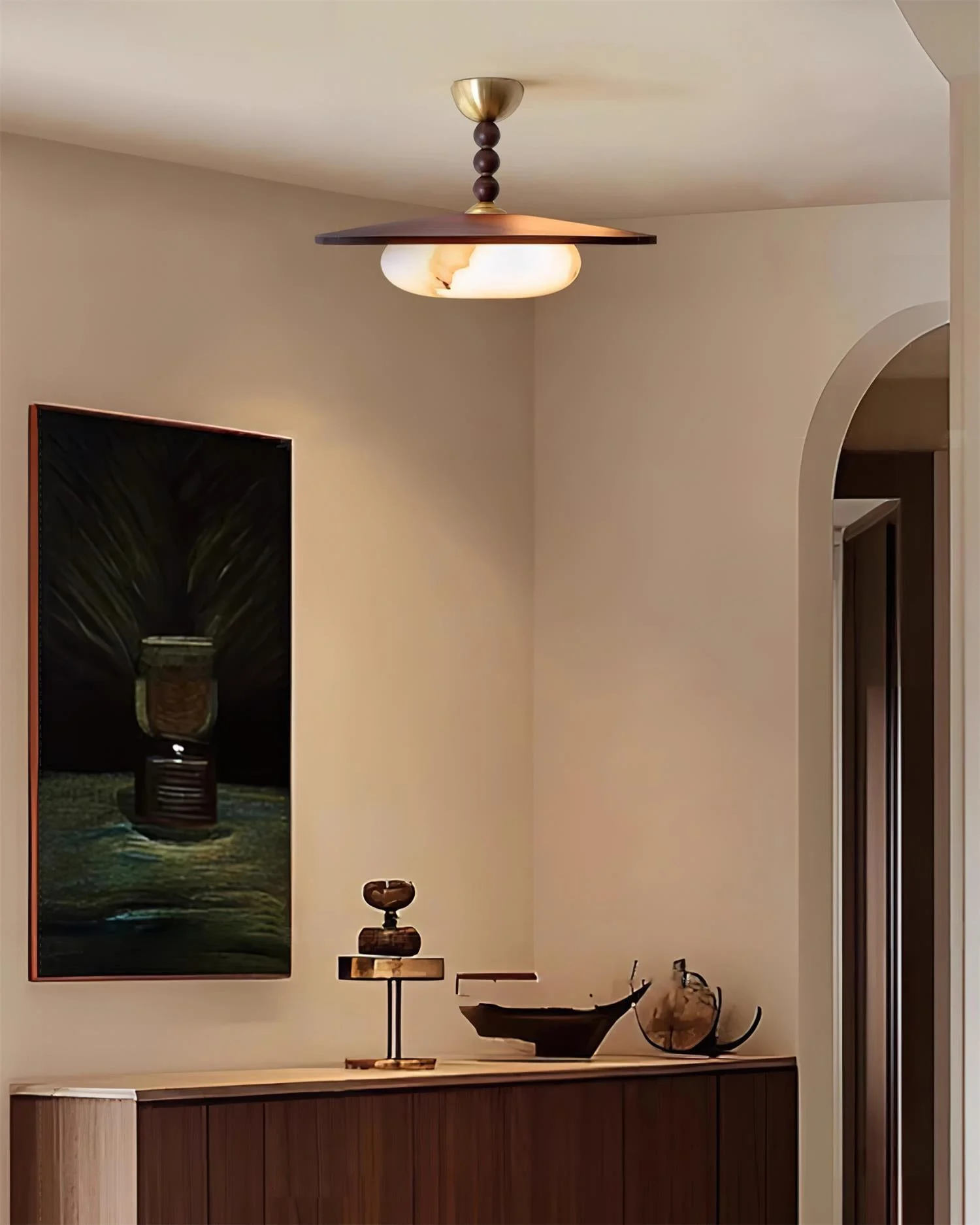 The Vicenza Ceiling Light from Docos combines natural elegance with modern design, featuring a sleek wooden shade paired with a stunning Imitation Alabaster diffuser that casts a warm, inviting glow. The brass accents and beaded wooden stem add a touch of sophistication, making this light a standout piece for dining rooms, kitchens, or living spaces. With its unique blend of textures and timeless aesthetic, the Vicenza Ceiling Light brings refined charm and functional beauty to your home.