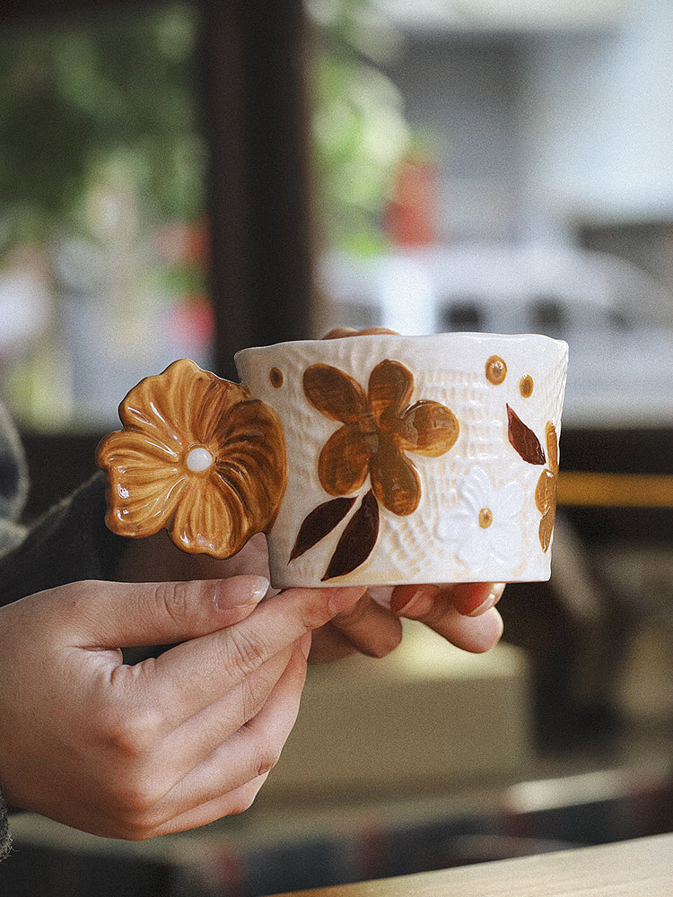 Elevate your beverage experience with the Vintage Embossed Floral Mug. This beautifully crafted mug features intricate floral embossing, making it a charming addition to your kitchen. Ideal for milk, coffee, or tea, this mug combines functionality with elegant design.