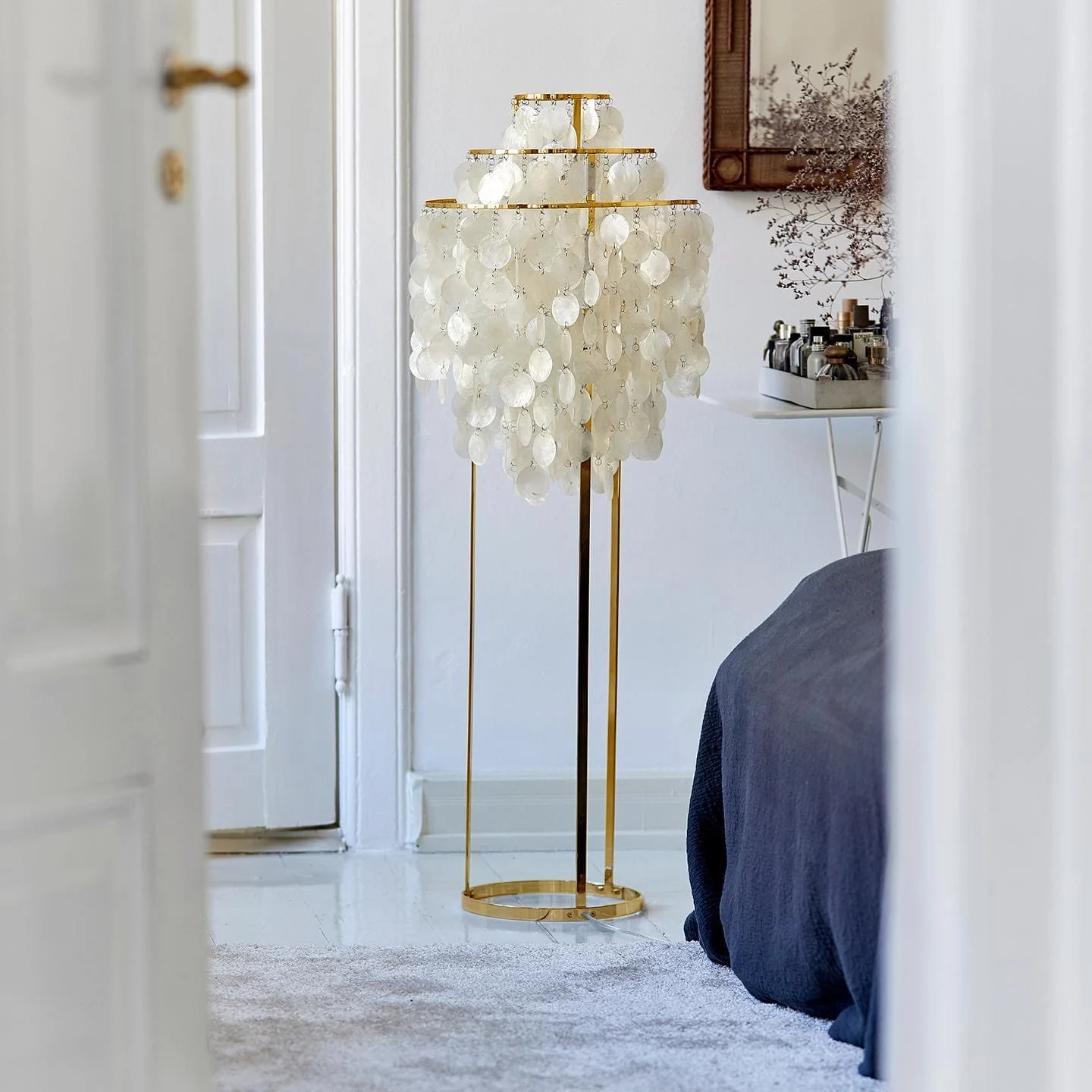 The original ecological imported shell lampshade exudes a gentle halo under the light after the light is turned on