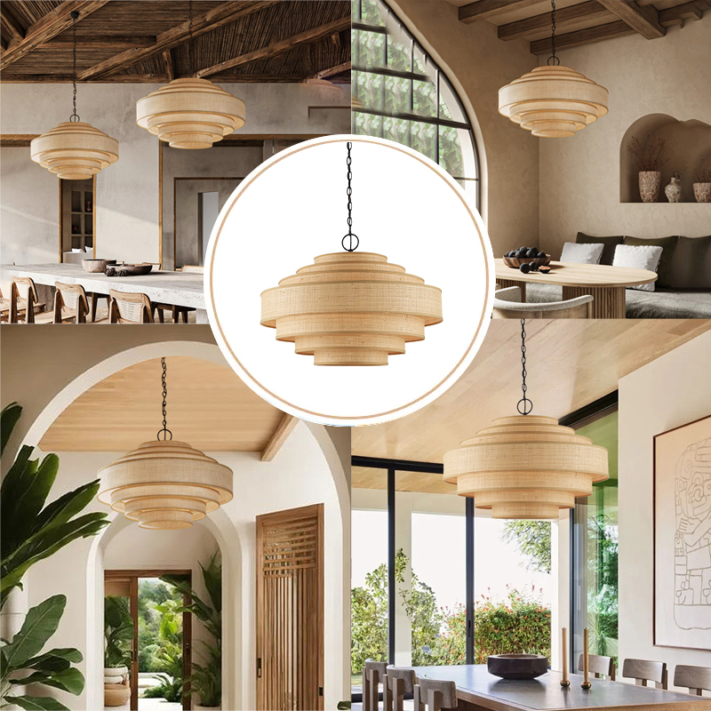 Crafted with a nod to the Japanese philosophy of finding beauty in imperfection, this fabric chandelier embodies simplicity and authenticity. Its meticulously woven fabric shade diffuses a soft, ambient light, casting a warm glow that envelops the space in a nostalgic charm. The design ingeniously combines复古 elements with a contemporary twist, making it a conversation starter for guests. Suspended gracefully, it serves as a centerpiece, effortlessly blending into eclectic or minimalist interiors. This pendant lamp is not merely illumination—it’s a testament to the art of wabi-sabi, transforming mundane moments into experiences suffused with tranquility and a sense of the artisan’s touch.