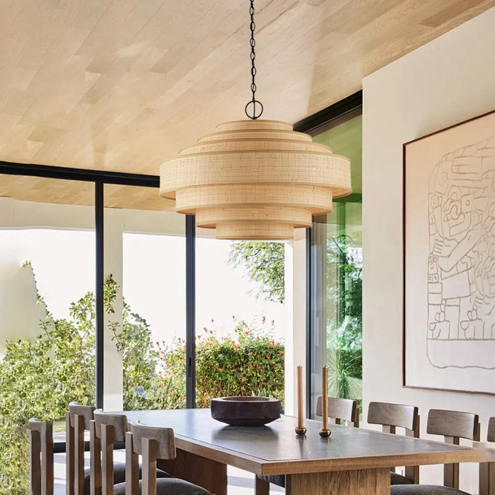 Crafted with a nod to the Japanese philosophy of finding beauty in imperfection, this fabric chandelier embodies simplicity and authenticity. Its meticulously woven fabric shade diffuses a soft, ambient light, casting a warm glow that envelops the space in a nostalgic charm. The design ingeniously combines复古 elements with a contemporary twist, making it a conversation starter for guests. Suspended gracefully, it serves as a centerpiece, effortlessly blending into eclectic or minimalist interiors. This pendant lamp is not merely illumination—it’s a testament to the art of wabi-sabi, transforming mundane moments into experiences suffused with tranquility and a sense of the artisan’s touch.