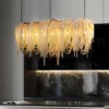 - This creative chandelier is suitable for adding charm, elegance and luxury to your home. And it has three light color temperatures that can be switched to easily create different home atmospheres. Your friends and family will be impressed by this stunning and beautiful modern tassel linear chandelier.