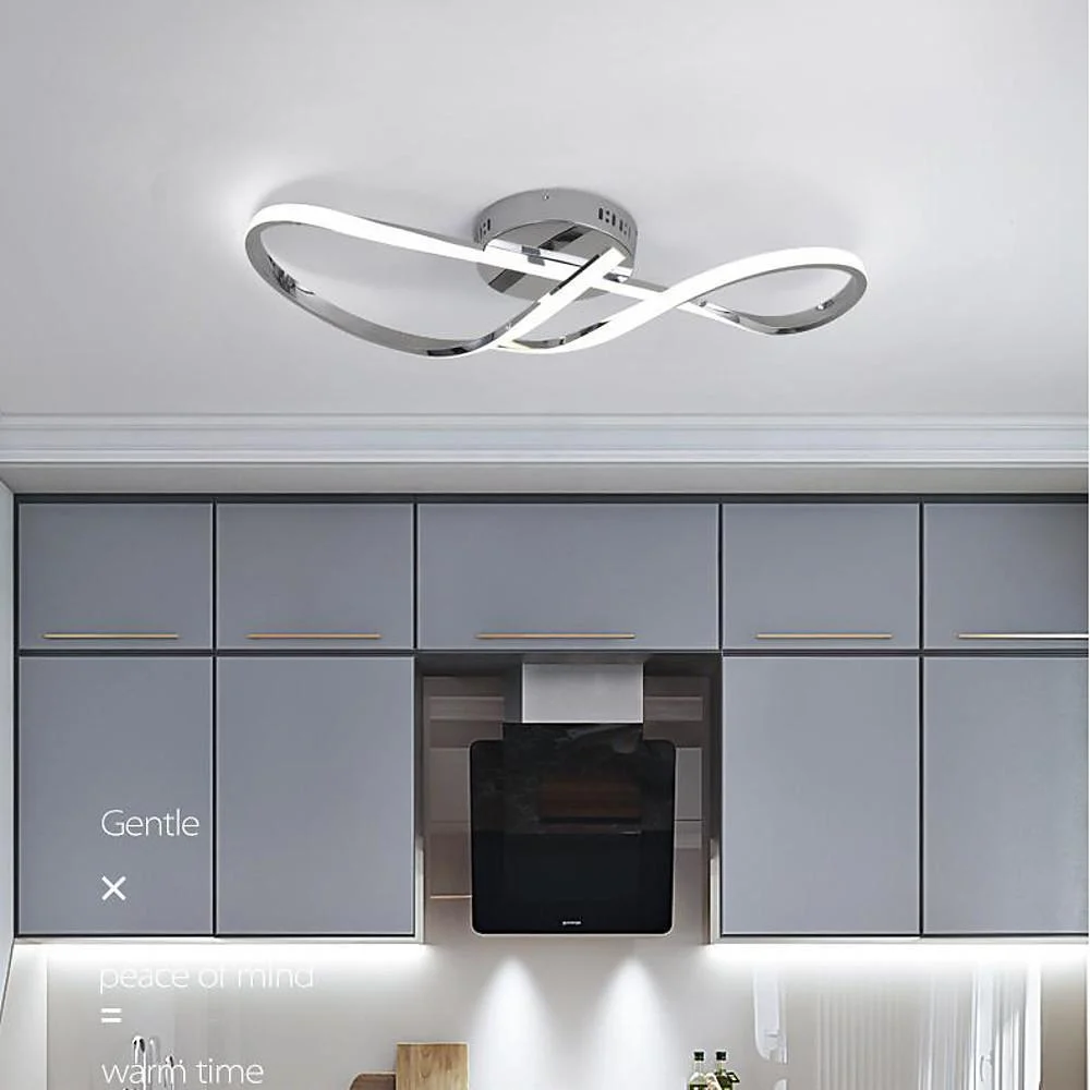 - The body lamp of this semi-flush mounted ceiling light is a wavy design, which feels three-dimensional geometric twisted spiral while has a modern Nordic and elegant linear appearance. It’s made of metal, and the galvanized shade softens the light to a greater extent.