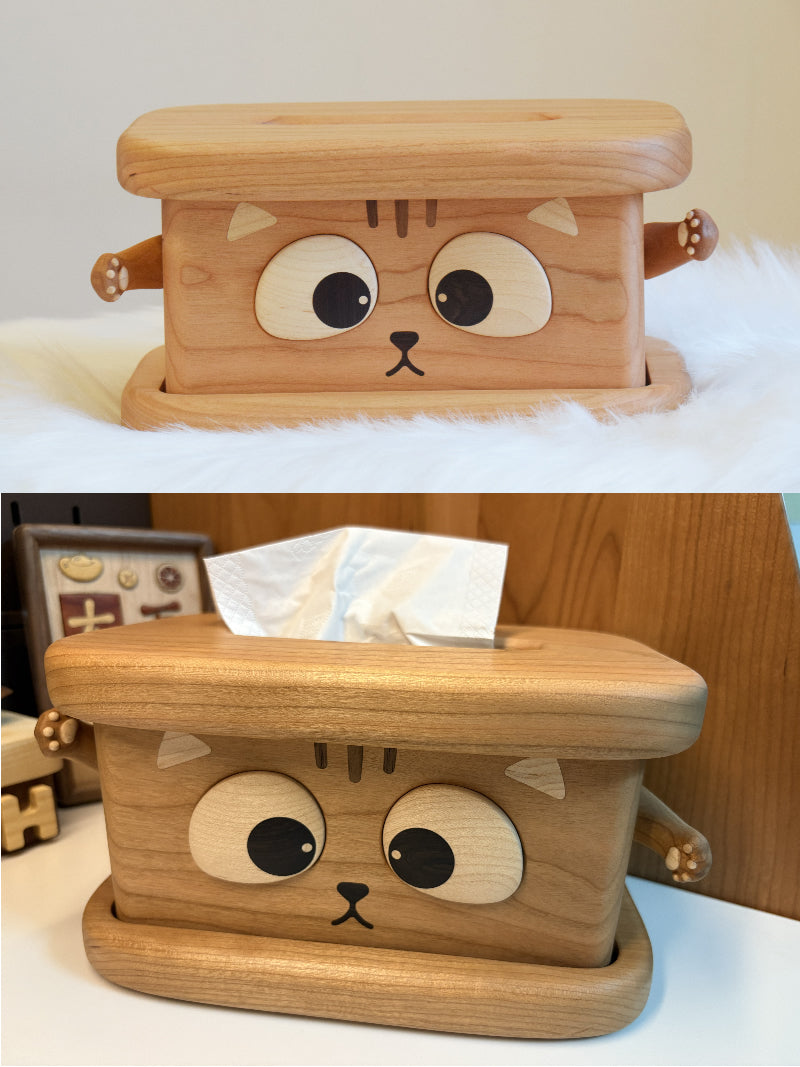 Bring a touch of whimsy to your home with this charming wooden cat tissue box. Handcrafted from premium natural wood, this functional decor piece features: