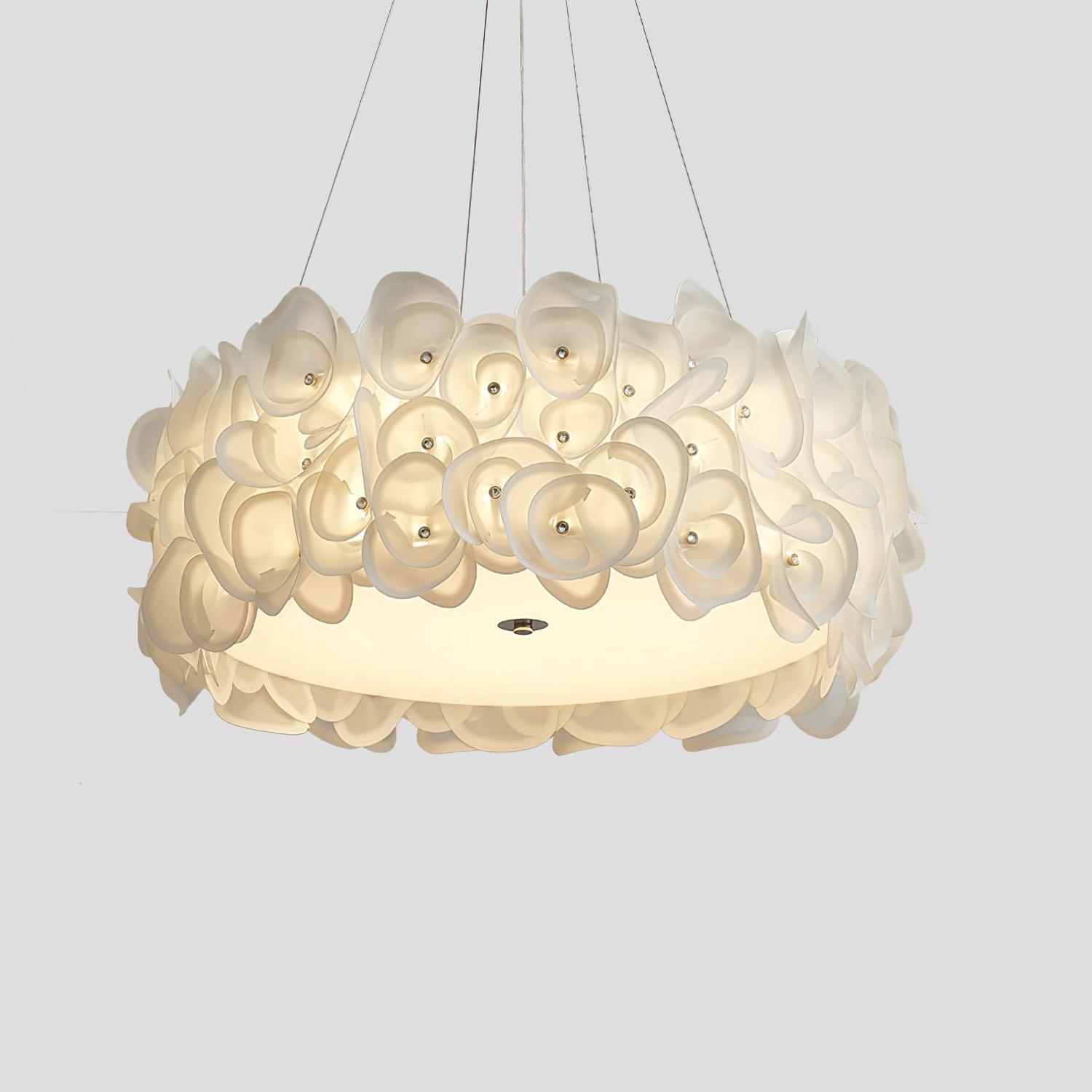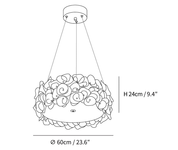 Add style and unique lighting to any room with this stunning White Hydrangea Pendant Lamp. Handcrafted with cold-cut metal, its petal shapes create an intriguing glow and mesmerizing shadows that will captivate onlookers. Crafted with an artful silhouette, this delicate pendant lamp will be the perfect addition to your home.