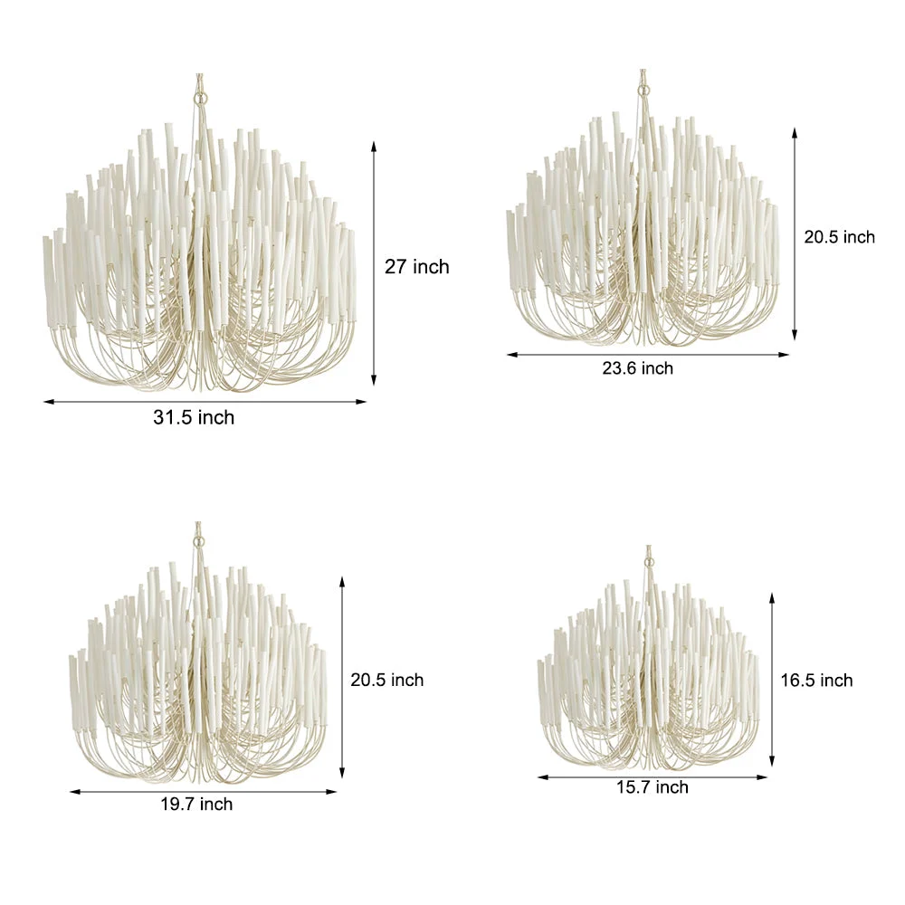- The white wooden candlestick chandelier is available in four sizes,15.7’’/19.7’’/23.6’’/31.5’’, and its adjustable hanging chain makes installation easier, making it perfect for restaurants, bars, bedrooms, or living rooms to make a dramatic impact in a brightly colored room.